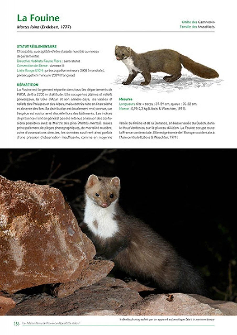 This book covers all mammals of the French region of Provence-Alpes-Côte d’Azur (PACA), including cetaceans, for a total of 114 species of the 130 species found in France.