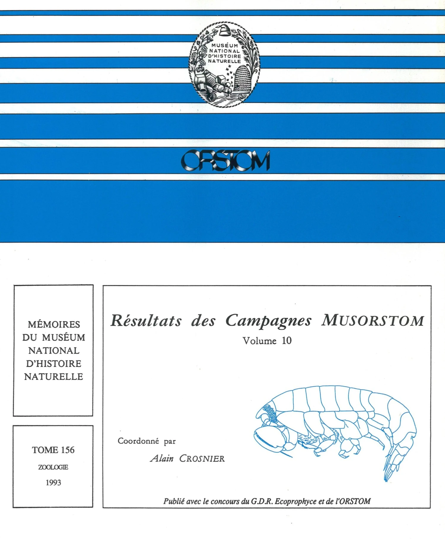 The present volume (which is volume 156 in the parent series Mémoires du Muséum National d’Histoire Naturelle) contains 9 contributions on the taxonomy and biogeography of crustaceans, recording a total of 159 species of Mysidacea, Amphipoda, Decapoda. Of these, no less than 72 are new to science, as are 12 genera. These figures confirm the stunning uniqueness of the bathyal fauna in this part of the world. In addition to these zoological papers, this volume contains 3 other contributions: a report on the MUSORSTOM 7 expedition to Wallis and Futuna (South Pacific); station lists of various sampling programs around New Caledonia since May 1989; and a list of 276 bibliographical references to papers reporting results of the exploratory cruises on the bathyal and abyssal fauna of the New Caledonian region. The MUSORSTOM series is a joint program of the Muséum national d’Histoire naturelle and the Institut Français de Recherche Scientifique pour le Développement en Coopération (ORSTOM).