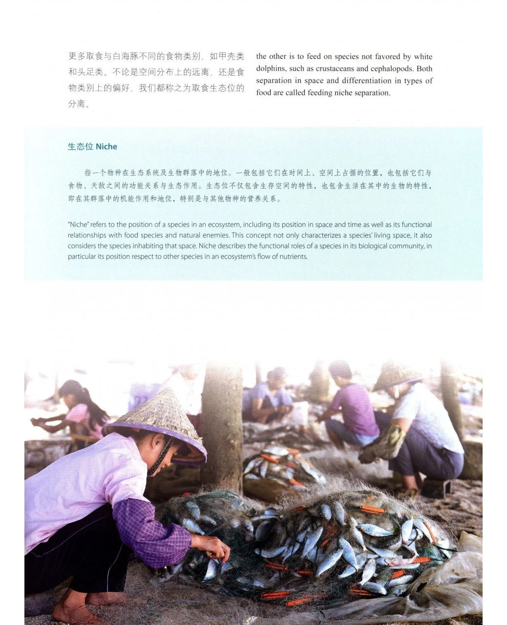 “We took 180,000 photos, more than one thousand video clips and thousands of GPS location points. With these records, we gradually understand many aspects of white dolphins and their life, including their population, distribution, migration, estrus, mating, breeding and feeding. We paid special attention to the biodiversity of estuarine-coastal-neritic ecosystem that white dolphins rely on and the basin state of its inflow rivers, in order to figure out proper conservation tactics to maintain this white dolphin population. Our work has been based on a systematic study on the relationship between local ecological events and dynamics of the dolphin population. This book present some of the findings from our nie years of research. Hopefully it can facilitate the understanding of and draw more attention to the white dolphins in the Beibu Gulf. The secret life of the white dolphins will be unveiled from this book.”